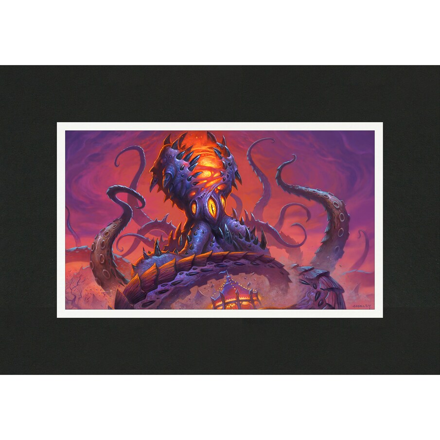 The best item ever! There are prints available for all the new old gods arriving in Darkmoon Faire. The fantastic art by Alex Horley is on display pre-matted, ready to go in a frame. The art portion is 6" by 10" and each print costs $29.99 USD.