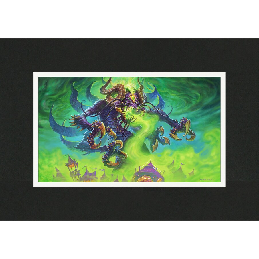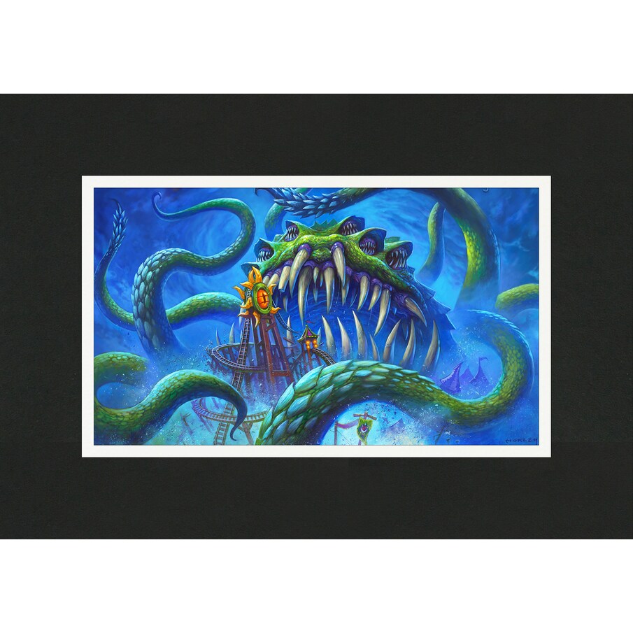 One more print is available for Hearthstone fans and it's the Madness at the Darkmoon Faire key art! The same price as the Old Gods prints at $29.99 USD, this one is a tiny by larger at 7" by 10".