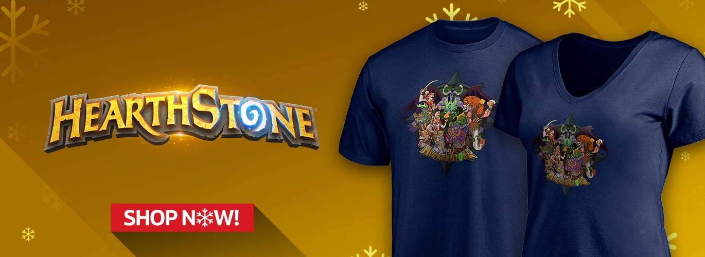 A new shirt has been added which features the Hearthstone heroes in stylized art. Like other shirts in the Blizzard Gear Store, these cost $24.99 USD.