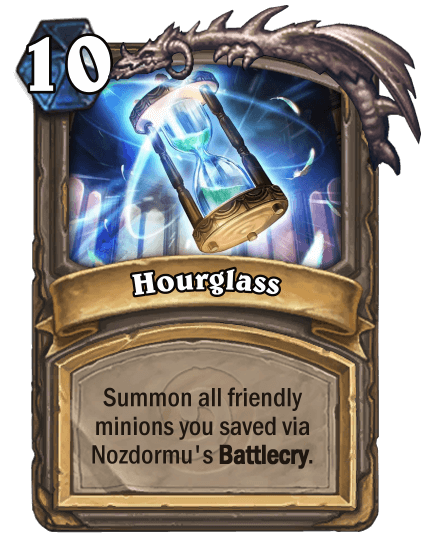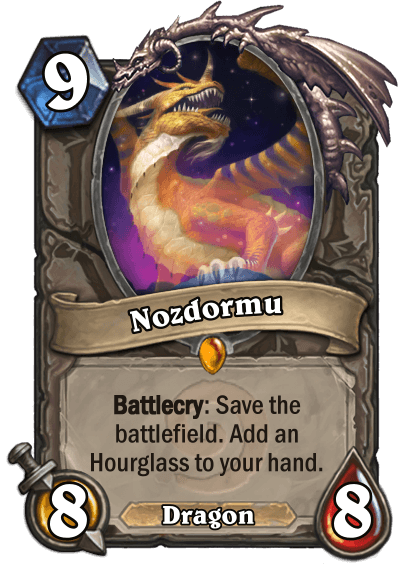 Nozdormu has now become your card to combat Control decks. Dare they use mass removal like Twisting Nether against Nozdormu, for you can now laugh at your opponent with Hourglass! But at the same time, it’s definitely a win-more card, because if used when behind, summoning a 10 Mana 8/8 isn’t that exciting."
