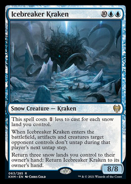 Icebreaker Kraken is downright sexy, potentially playable on turn 6 with no ramp spells. Using a splash of green you could keep the enemy units tapped a long time. Forget the names but I think there's currently 2 cards in standard that let you drop 3 lands total a turn. Might also do some really neat things with landfall decks.