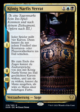 II & III: Until end of turn, you may cast spells from among the cards in exile with King Narfi's Betrayal and spend mana as though it were mana of any color to do so.