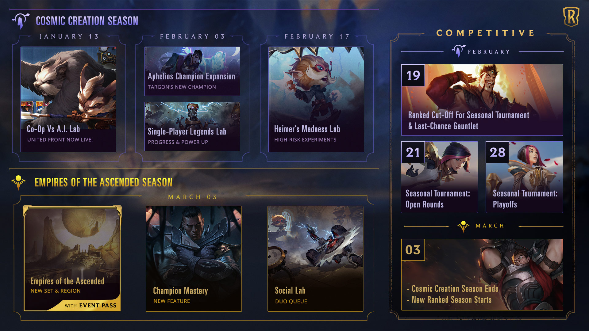 "Heimerdinger's Madness Lab", which was originally scheduled for February 3rd along side Aphelios's release, will now come out on February 17th. The "Single-Player Legend Lab" takes its place in the February 3rd release.