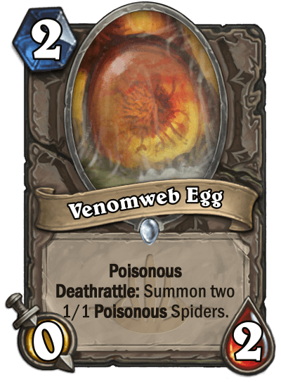 LutriSpellcaster: "This set was finished very quickly and most cards are their first draft, so looking for feedback. The three spider based cards, Venomweb Egg, Krakatoan Spider and Sri’skulk are all cards repurposed from an expansion I abandoned based in Tirisfal itself."