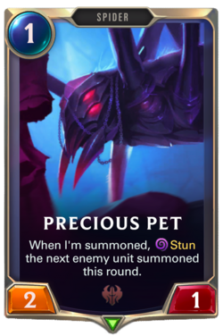 Before it was nerfed, this card's text said "When I'm summoned, Stun the next enemy unit summoned this round."