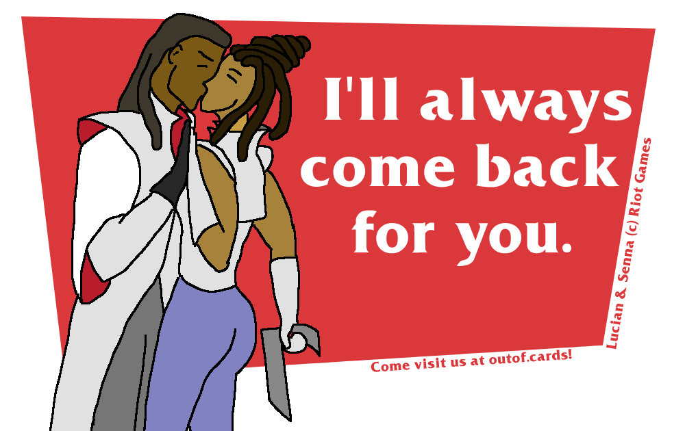 Hail, Champions! Valentine's Day is this weekend, so we've got a special treat for you. Enjoy these Legends of Runeterra Valentines Day cards from us to you! Click on any of them to view a larger size.