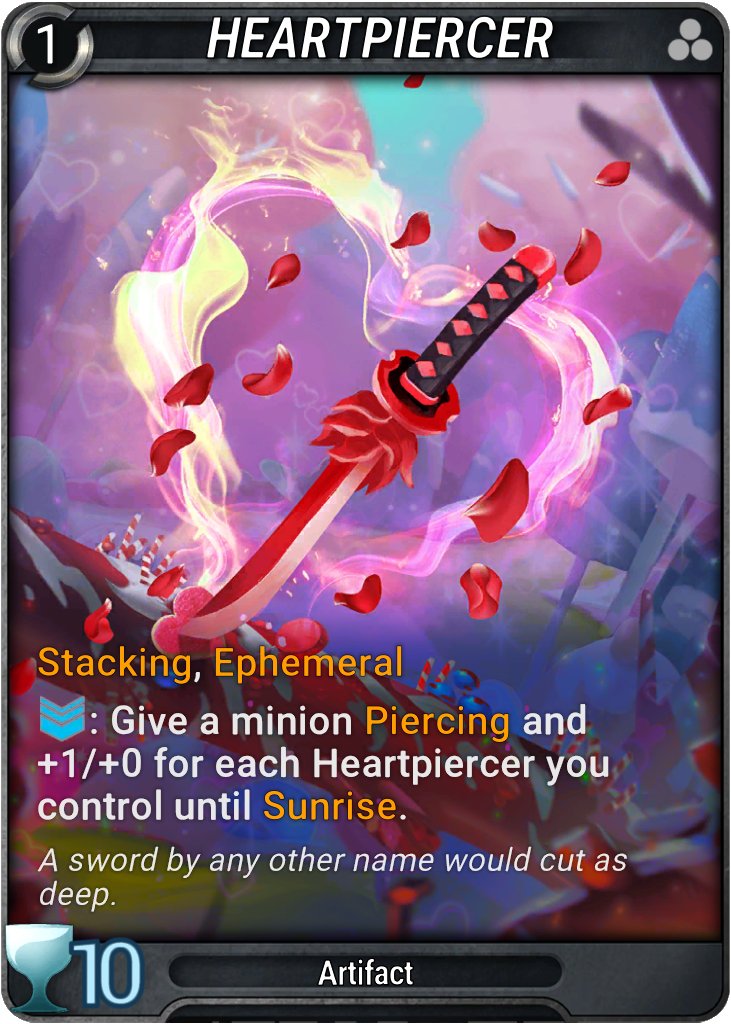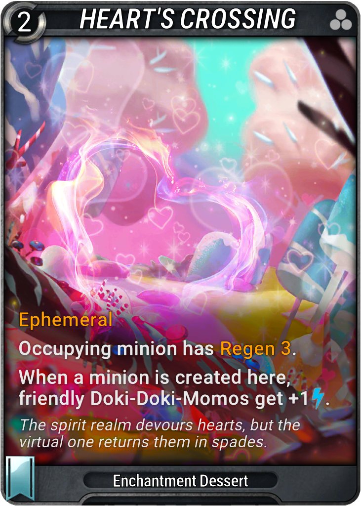Rhino Games continues giving us bits and pieces about the upcoming Valentine's Day event, just as they promised. This time, it's two uncollectible cards, an Enchantment Dessert (yummy) that gives your Doki-Doki-Momos more energy, and a Stacking Artifact that benefits from controlling multiple copies, similar to Matryoshka.