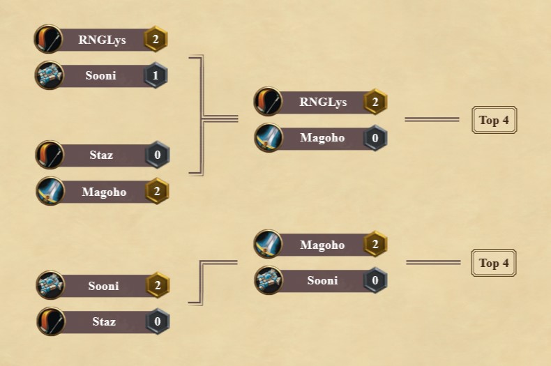 First things first, here are the decklists from top 8 players of the tournament. Chinese player RNGLys came on top in Swiss rounds with 11-1 win-loss record with everyone else in top 8 (except Sooni with 9-3) ending at 10-2.