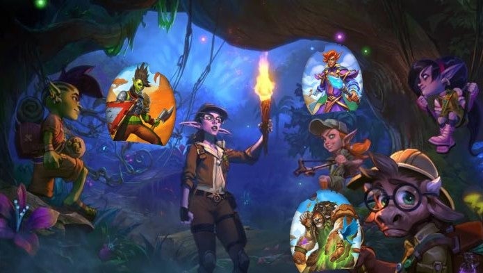 It all started when /u/TEnOTT made a post on reddit stating the mercenaries had reminded them of some of the kids found in a piece of art from the Journey to Un'Goro set. This was brought to the attention of Hearthstone Game Designer and self-proclaimed Interactive Narrative Nerd, Matt London, who was then able to confirm that this was indeed no coincidence. Here's the piece in question with the assumed grown-up explorers: