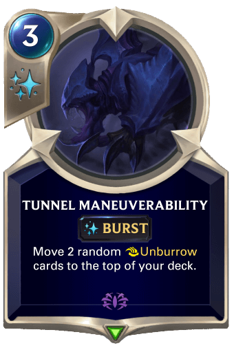 Tunnel Maneuverability is a cool spell that makes your burrowed cards move within their tunnels to the top of your deck, allowing you to make use of their Unburrow ability.