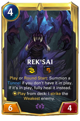 Rek'sai leads the Unburrow archetype and she's all about her fantasy of burrowing under the sands, creating tunnels, and emerging to kill her prey.