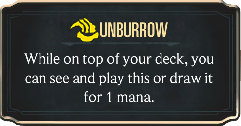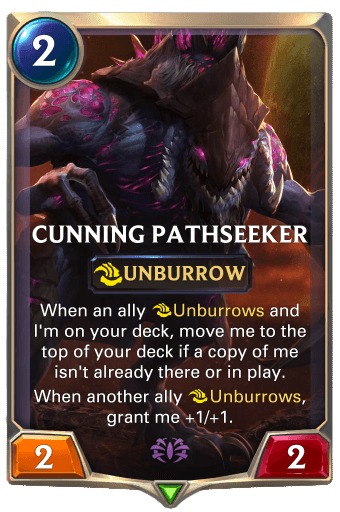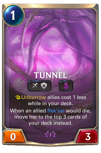DeadlyTCG: "Unburrow is a Void & Shurima keyword that represents both the Xer'sai (Rek'sai's race) and other desert creatures that burrow, like worms.