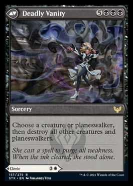 Each player sacrifices a creature or paneswalker. If you sacrifice a permanent this way, you may return another permanent card from your graveyard to your hand.