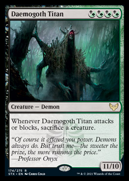 Whenever you sacrfice Daemogoth Woe-Eeater, each opponent discards a card, and you draw a card and gain 2 life.