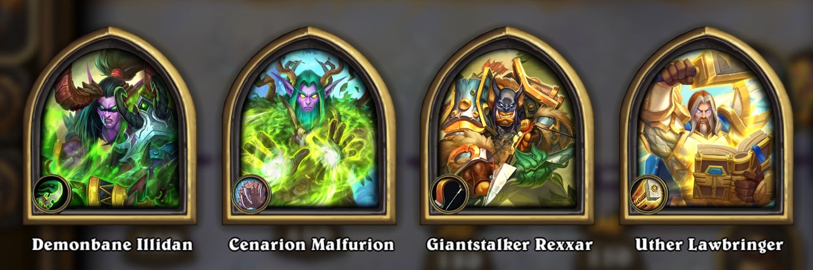 Heroes are a bit different than cards though because they don't need to be static to be in line with Blizzard's goal of being instantly recognizable. As a player, you're told who you're fighting at the start of the game and what their class is. In addition to the cards they will inevitably play cluing you into what you're fighting if you missed that queue, you can also see their hero power as well for a quick indicator of what to expect since the icons are shared.