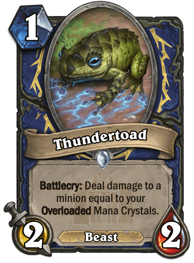 RadioInactive: "I first started playing Hearthstone around the launch of The Witchwood, about three years, I’ve only started making custom cards around six months ago. My design philosophies that went into making the set were to push archetypes and cards just slightly past the current power level. It's a lot better to make a card that's interesting but a bit too powerful than to make a weaker, unimpactful one. Cards like Battlebolt Veteran, Little Hero and Thundertoad are extremely pushed in power level, but there isn't much synergy to actually make full use of that power, which creates interesting deck building decisions. Obviously don’t go overboard and make cards that win on turn one, but strong cards aren’t a bad thing."