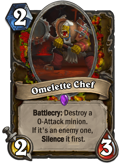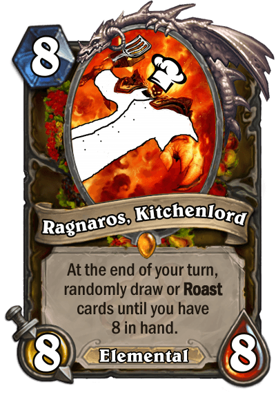 Changing the flavour was the best decision I made for the class. I honestly think it's the only reason I even made it to the finals. All other classes had serious flavour, while I made wacky stuff like Omelette Chef or Ragnaros, Kitchenlord. Even the cards with the most boring effects become cool with the right flavour.
