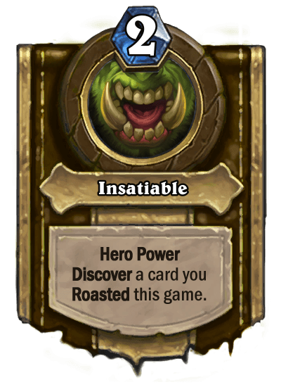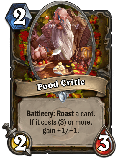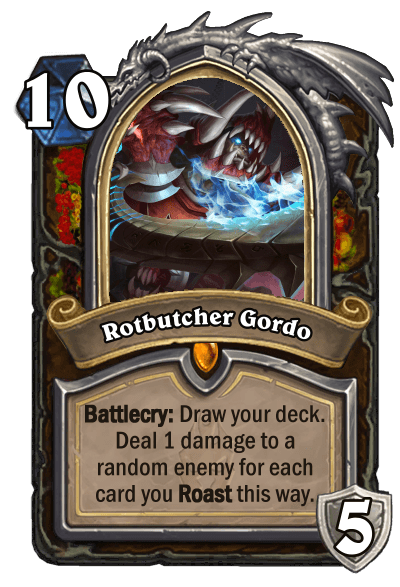 Another anecdote. My Chef class has been integrated into an HS mod for custom classes. That's when people discovered that the original version of my DK was ultra cancer. Basically, its Battlecry roasts your entire deck, and its original HP shuffled any card you play into your deck so you could play the same card over and over again... like Reno Jackson for instance! So I decided to nerf it. The new version only discovers a card you roasted so it's harder to make it consistent."