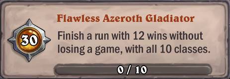 • Your first 12 wins is exciting. Your first 12-0 is exciting. Getting 12 wins with all classes is exciting. But eventually you get used to it. Probably not with all classes, but I've had my fair share of 12-0. And then suddenly there are achievements and you get excited again because you got to do it all over again. One moment I remember all to well. The achievements where just implemented so I didn't have any 12 wins yet and I was playing the final boss with an 11-0 Demon Hunter. I had lethal in hand, but BANG!, the excitement kicked in again and it made me misplay. I missed lethal and lost the game because of that. Won the next game, so I still got to 12, but this still haunts my dreams sometimes. Since the achievements that has been my only shot at a 12-0, though I'm not playing nearly as much Arena as I used to. Made it to 12 with Demon Hunter, Rogue and Warlock so I still have a long way to go.