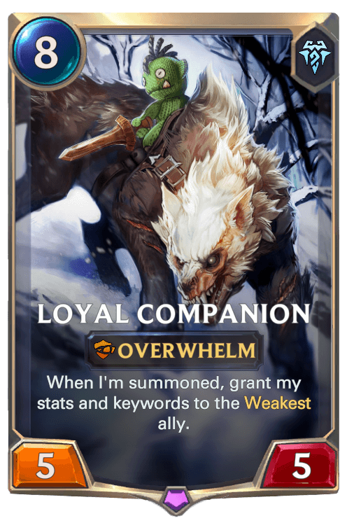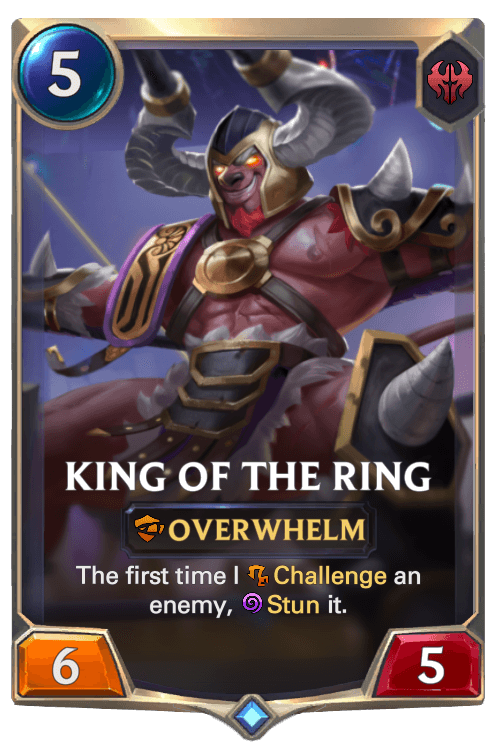 In the end, I decided that it would be best to re-shift my focus into expanding more on base game keywords that were simplistic, well-designed, and offered better degrees of freedom to design cards in, especially because they don’t have to be necessarily limited to a single region. Keywords such as stun, overwhelm, quick attack, etc. can be found in multiple regions, and because of that, instead of tunnel-visioning into a newly created keyword, I figured it would be better to broaden my perspective instead, and create unique, one-of, out-of-the-box effects that were outside of the constraints of self-imposed keywords. As a result, I was able to create cards that had outlandish effects, but still appeared feasible, such as Benevolent Sunstrider, King of the Ring, Loyal Companion, and Rattlego- I mean The Churned Sisters.