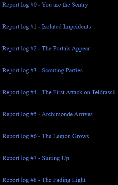 The premise takes place in an alternate post-apocalyptic Azeroth where the Burning Legion won. The world is dead, and has been for millennia now. There’s nothing left to do. Of course, that’s when you, the player, awake, alone. It’s too late to save the day: all that matters left is answers. The nine heroes -- and the grisly fates they met -- are key to it all.
