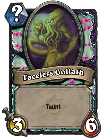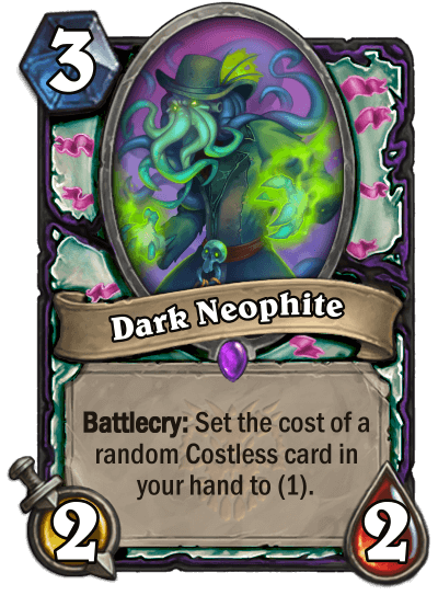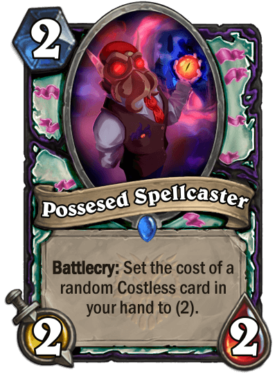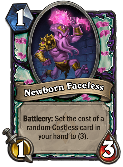 For last, we have the most controversial mechanic of the class, the Costless cards. I don't quite remember how I got into that mechanic, all I remember is that I wanted to make mana manipulation a theme of the class, like in that Tavern Brawl where the cards swapped costs each turn, and after some brainstorm I ended up with the Costless mechanic, cards who cost around 4.5 Mana who can only be played if another card puts a cost on it. Although the mechanic is quite "hipster", I think it ended adding a lot of uniqueness and identity to the class, something that I don't think Demon Hunter truly has. The main core of the Costless archetype is Newborn Faceless, Possessed Spellcaster, Dark Neophite, Faceless Goliath and Shadow Drake."