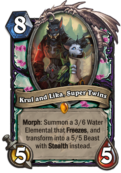 MrRhapsody: "We can say that both statements are true. At the start of the creation, I was focusing in making the cards and use some of their abilities to create the themes, flavors and archetypes of the class, the mechanics were "shaped" (eh?) alongside the first 1/3 of the cards created. So the first 1/3 cards who first used the mechanics and supported the archetypes was created alongside them, and the other others 2/3 were created around the mechanics and archetypes (Morph, Forms, Shapeless, Costless, Taunt, Dragons, Handbuffs, etc.)"