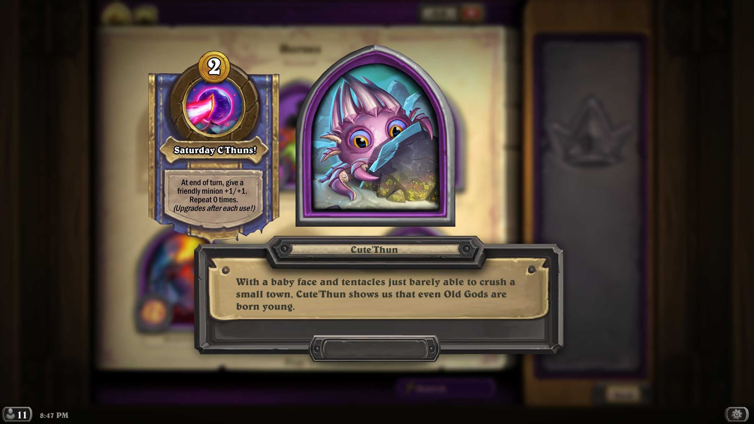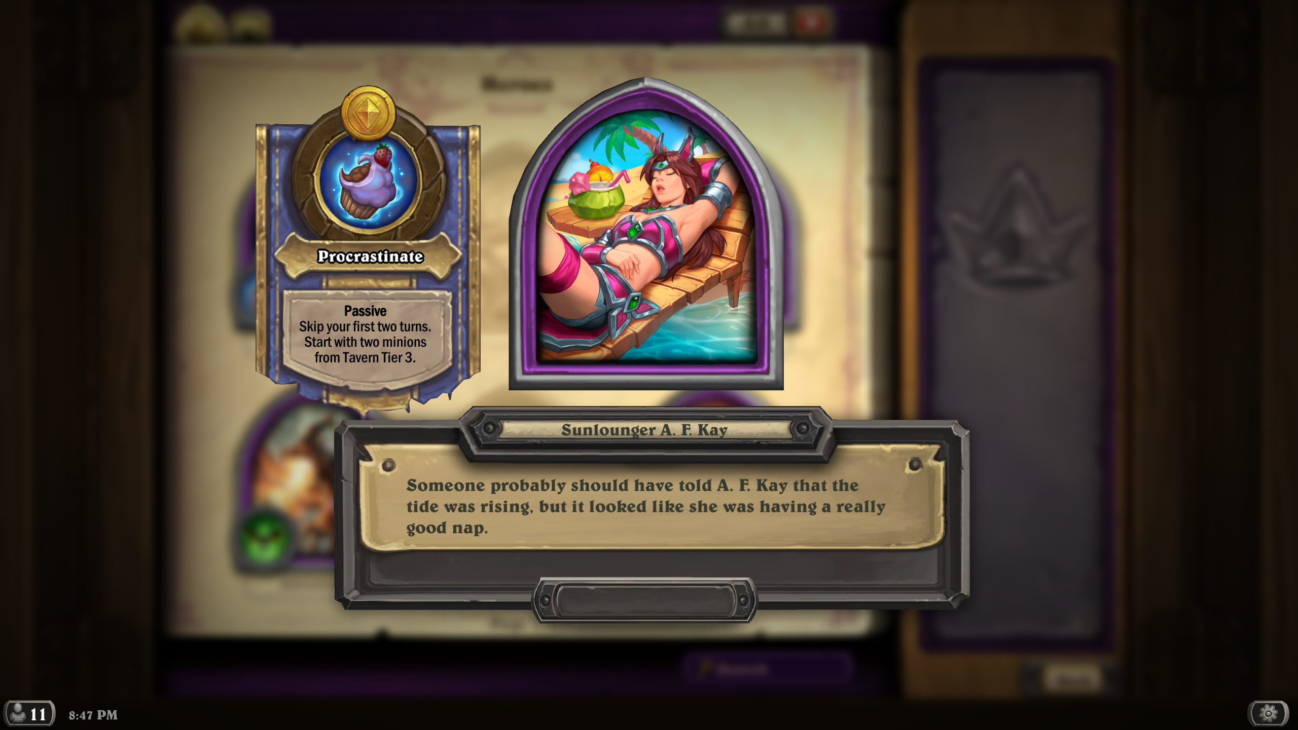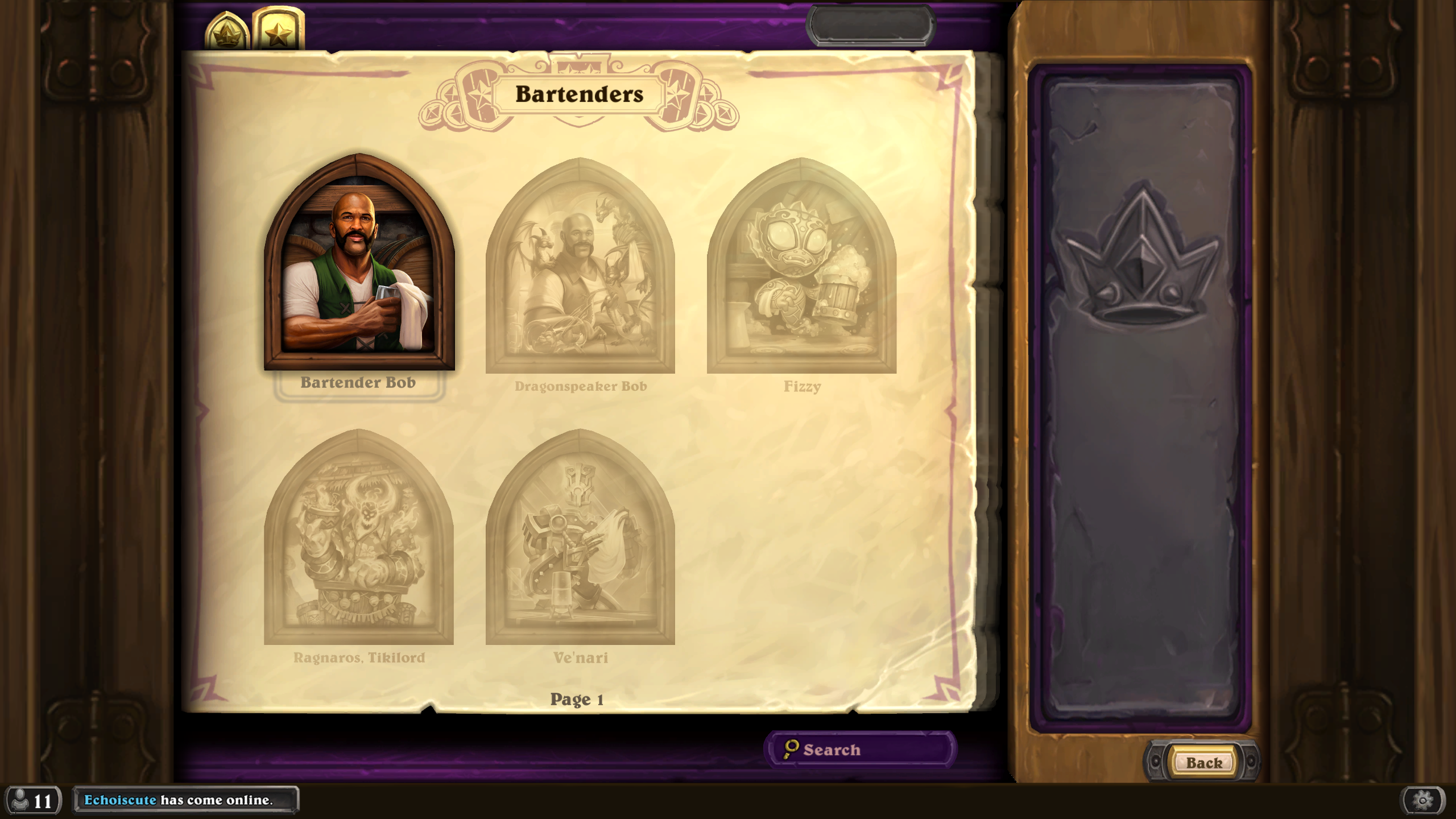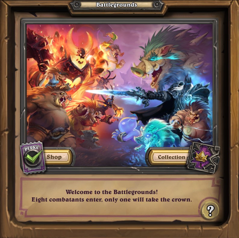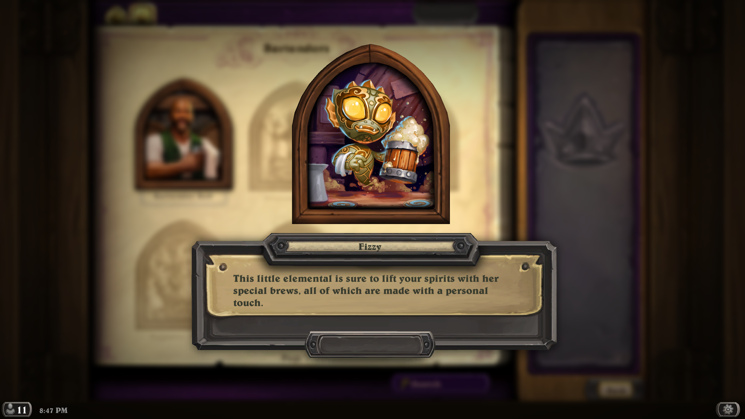 We've got a new interface in the Battlegrounds section of Hearthstone to manage your cosmetics! Featuring Bartenders and Hero selection, you can choose and admire all the skins you've collected in an easy to use spot found on a "Collection" button within the Battlegrounds menu.