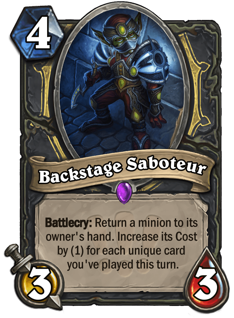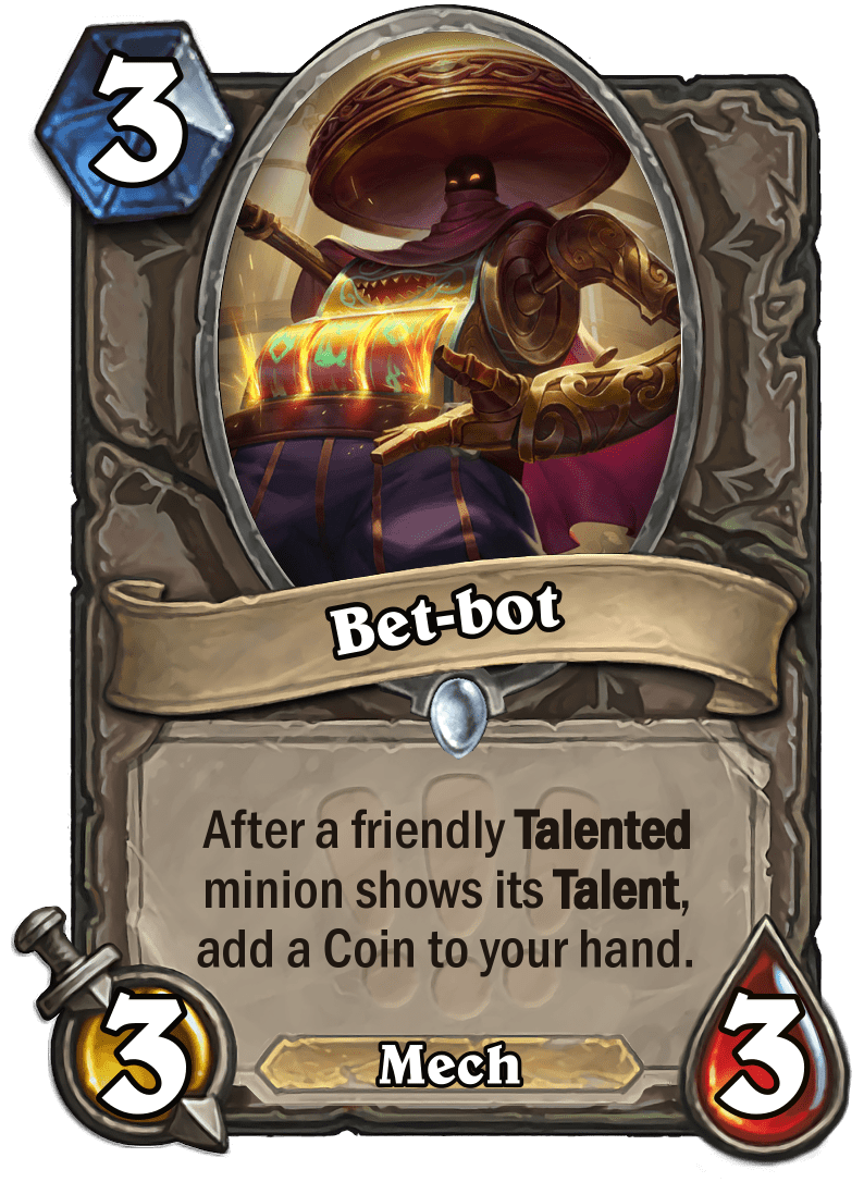 I thought about different versions and thematics wherein this mechanic could've fit, such as a Gadgetzan comeback and the mechanic would have become a Task given to a minion from its boss.