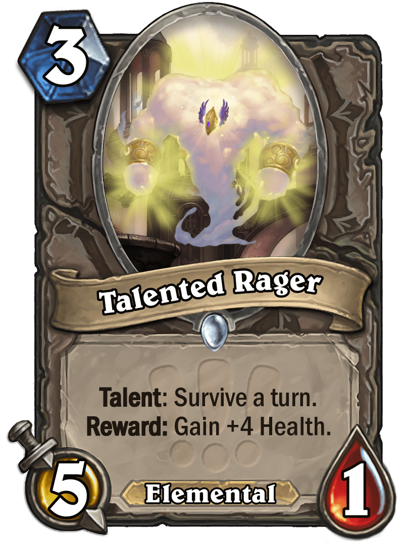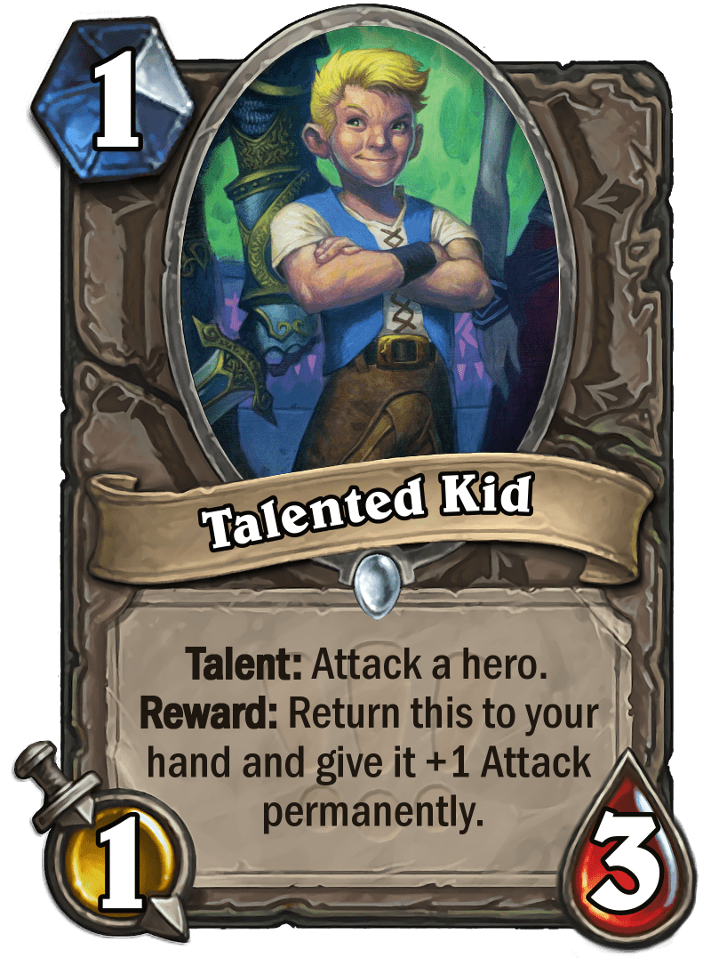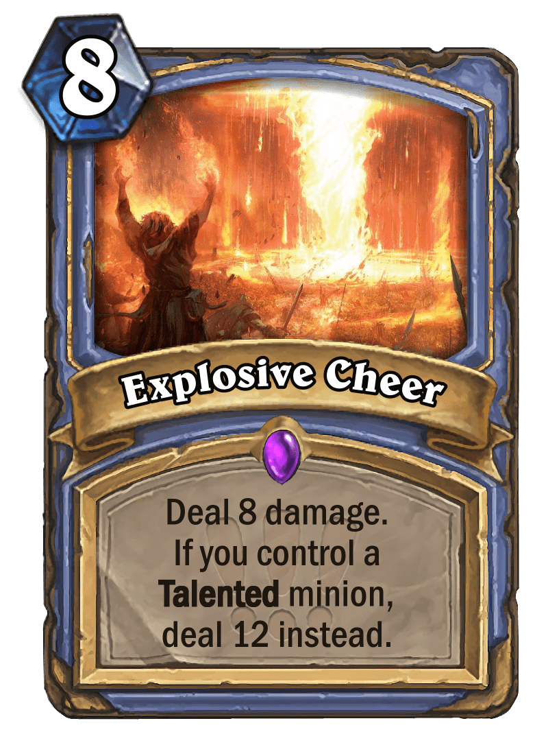 Grondaia: "The core thematic of the expansion is a huge talent show (such as [Insertcountryname]'s got Talent and X-Factor, from which the expansion takes inspiration for its name) where anyone can partecipate and show their most incredible, unusual or bizzare skills. The design of the expansion started from the mechanic, a simple variant of the Hearthstone's Quests (which would later become the "Talent" keyword).