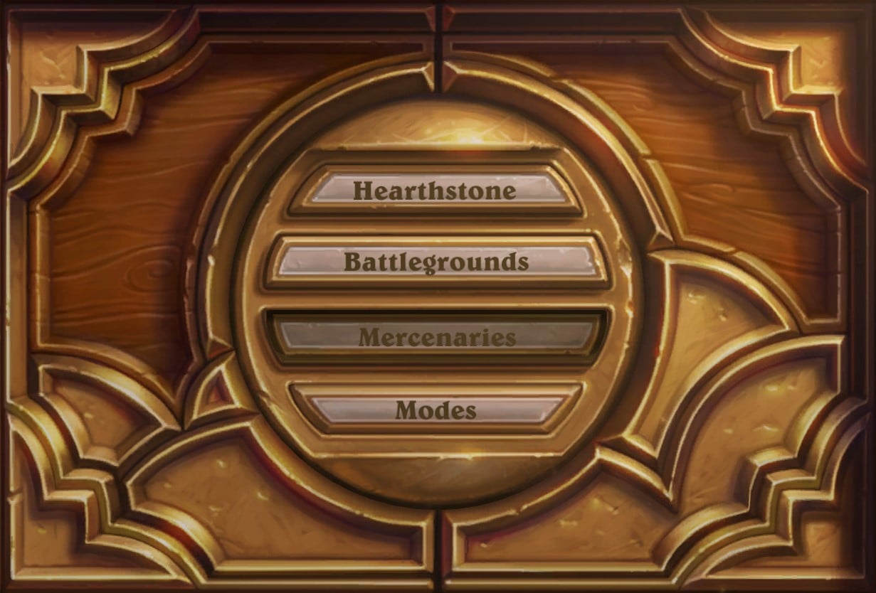Battlegrounds overtakes the Adventures menu which has been relegated to the Modes button at the bottom. This is little surprise since Battlegrounds is a huge mode with enough active players that Hearthstone's Game Director, Ben Lee, said if the game were on Steam as a standalone, it would fit into the top 3! The move into the main menu makes the game easier to access for players that only play that.
