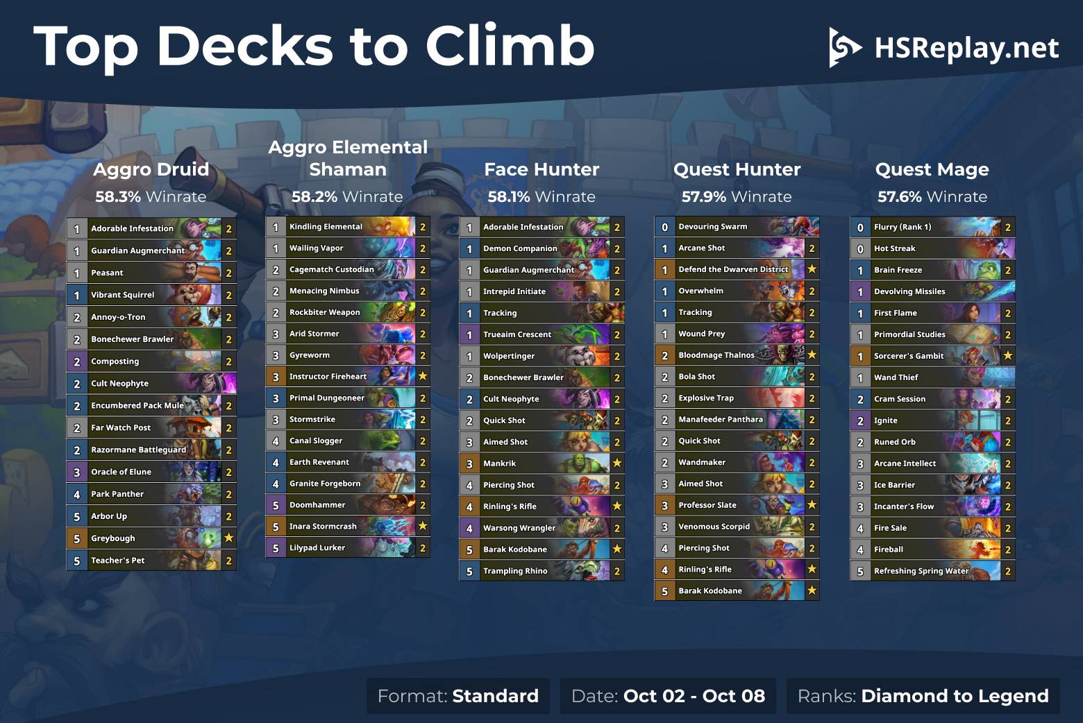 But, we're not there just yet. With still a few days to go, it might just be a good idea to get the bulk of laddering towards your desirable final rank out of the way (and deal with that pesky weekly Ranked quest early on). To help us achieve these goals, HSReplay.net has recently shared a few suggestions based on their data: