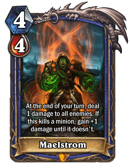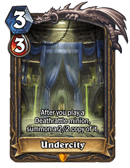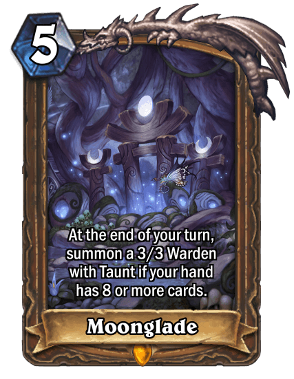 One point that always persists whenever Location cards are used is their permanent effects. While I wanted to keep some of this aspect there, I also had a way to combat this by making some of them temporary like Silvermoon City and Undercity. As noted before, temporary Locations have a blood-drop icon underneath the mana cost which signifies how many turns they last before they disappear. Permanent ones like Moonglade or Shadowmoon Valley do not have this icon. The aspect of temporary Locations is not only a boon for balancing, but also for future design. Should other Location cards be added in future sets, you can play multiple of them in the same deck without one of them being fully wasted because it either forces you to overwrite your active one or just sits in your hand because you want to keep the one you currently have. I am aware that a Health icon is perhaps not the best way to display this, but it’s what is available in HearthCards and I think it’s intuitive enough to understand.