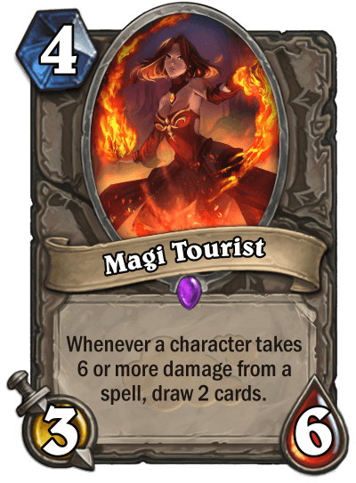 In typical Hearthstone conventions, I decided to add a little bit of silly flavor (but not overly so), and the expansion has a vacation/travel theme to it. All players receive a copy of Tour Guide Lina for free, and she basically serves as the main character of the set, providing us with all of the information about each place we visit on our trips as we take a rid around the zeppelins. Each class is themed after a certain place of the Warcraft universe with their Location card representing the place as a whole and the other Legendary card being a significant character of that area.
