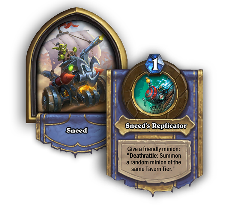 - Give a friendly minion: Deathrattle: Summon a random minion of the same Tavern Tier.