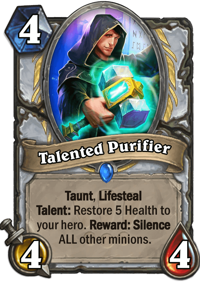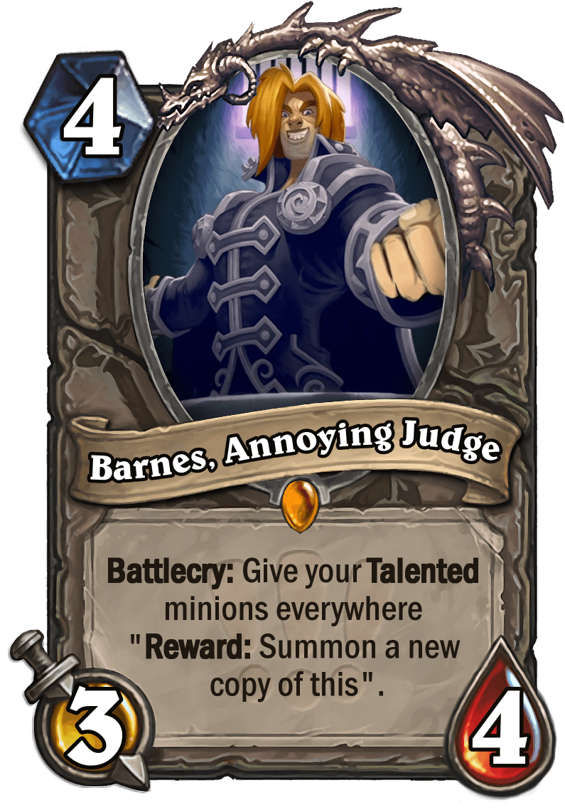 Have you got talent? Grondaia's got the talent for making cards in this set, HS Factor. This is a set that is themed after talent show competition series. But what's a talent competition without... talent? That happens to be the keyword for the set which uses the fairly common "Sidequest on a minion" design.