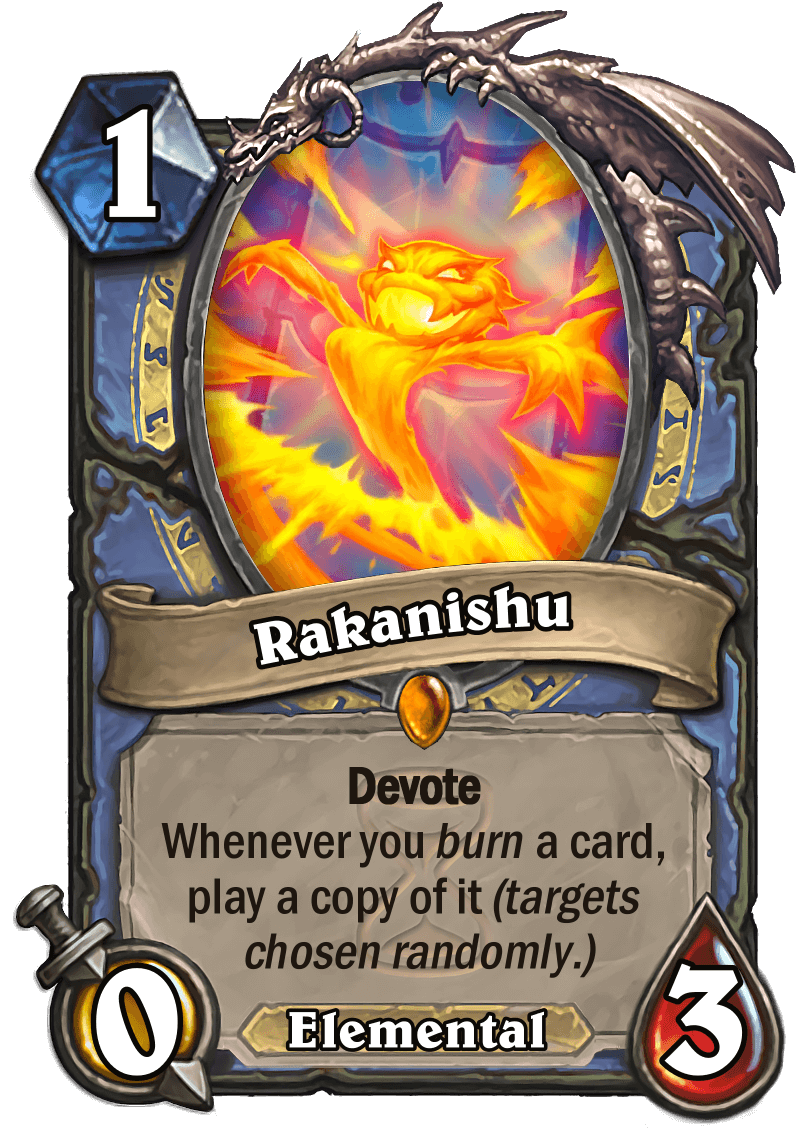 This installment looked at a 53-Card Mini Set titled "Founding of Karatoa" created by LutriSpellcaster, although some people may know him better by the name of "Meepazor". The set notably uses the concept of tagged spells a few months before Forged in the Barrens would add them to the game (and thus, uses the minion tag design at the bottom instead of the spell tag design as the latter did not exist yet). While historically a popular concept for fan-made cards prior to Forged in the Barrens, this execution differs from previous existing interpretations of the concept as it uses the minion types as opposed to a spell of spell-specific ones.