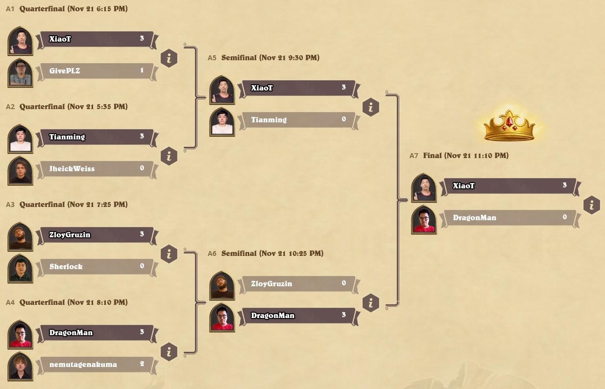 Note that Vanndar Stormpike and Drek'Thar were banned from the tournament due to players not having access to both at the moment.