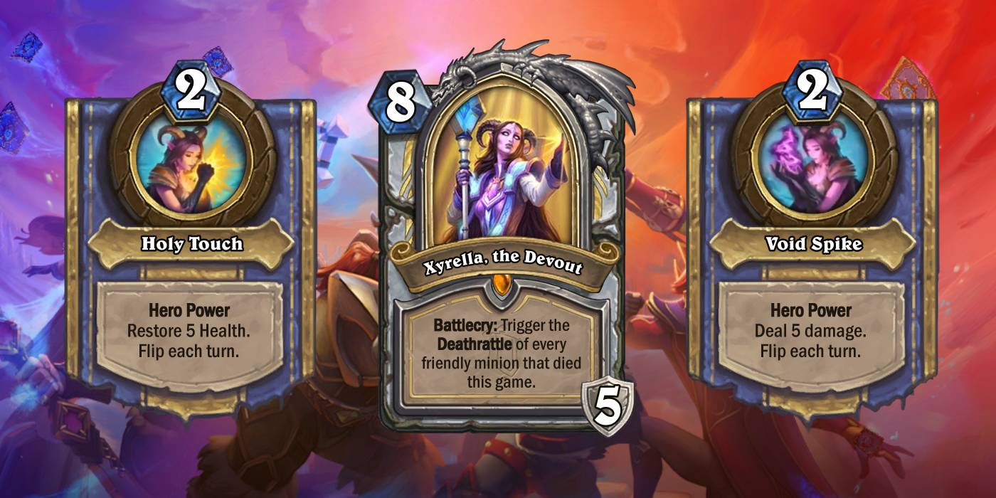 The only problem here would be the battlecry. It'll only ever be good if enough deathrattles died this game, which means you can't just slot this into every priest deck and hope for the best, you'd need to invest in a gameplan, whether its Lightshower Elementals or Leper Gnomes. This makes the card more reliant on deck building and card draw rng more so than the other heros seen so far.