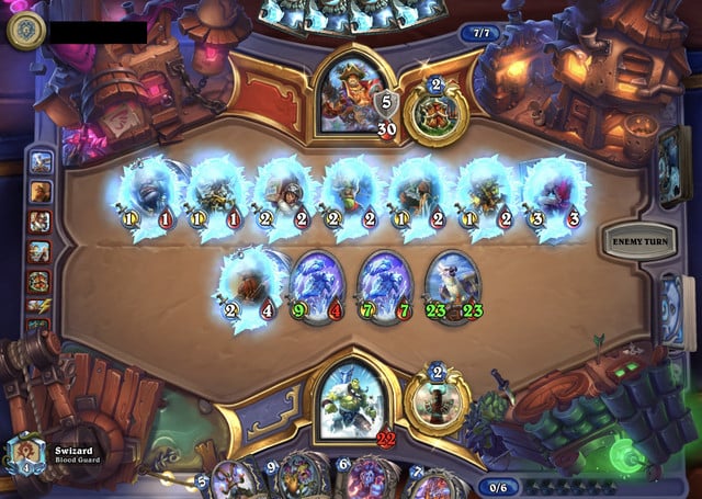 Finally, you have Bearon Gla'shear as a finisher to summon multiple 3/4 freeze elementals. Although they have low damage, they can flexibly be used to freeze certain enemy minions while the other elementals go face, and you can use Cheaty Snobolds to double or triple their damage.