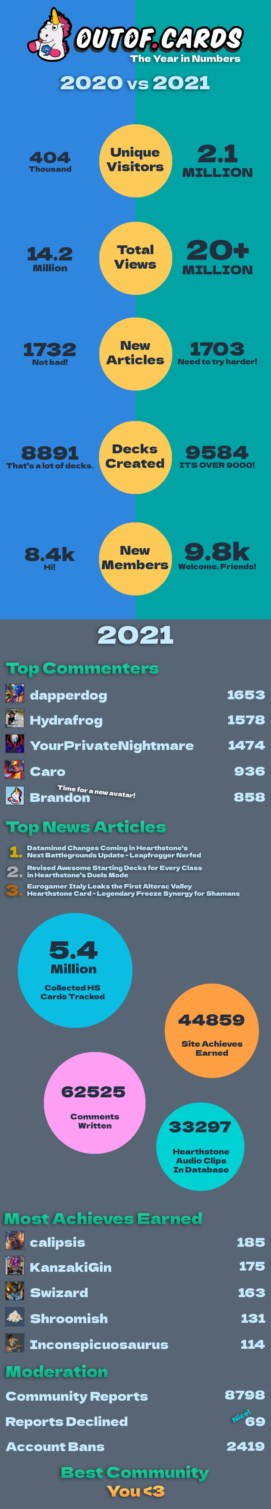 So being the #5 top commenter in 2021 is kinda ironic to me. lol. I guess that HS card reveal seasons still helped a lot, and other than that there must have been plenty of interesting discussions i guess?