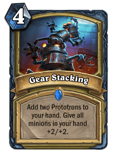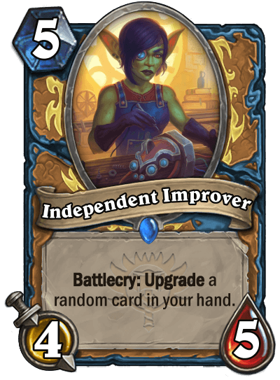 Mr.Stupid: "It was inspired by the DnD class of the same name. I loved playing it and thought it would be cool to bring something similar to Hearthstone. The focas on upgrading and buffing the cards in hand was meant to show tinkering and improvements."