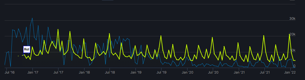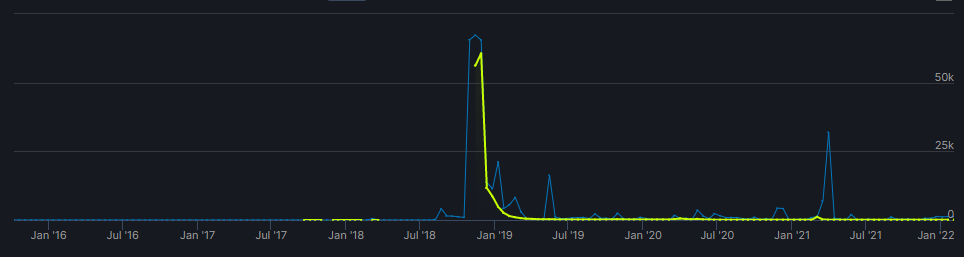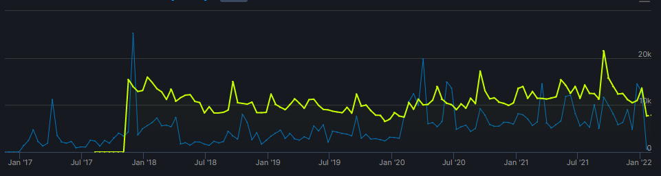 GWENT: The Witcher Card Game which saw its release back in 2017, though only recently joining Steam in 2020, capped out at 7,504 concurrent players on Steam. It should be noted though you can also play this game through the GoG Galaxy Launcher, so numbers aren't very accurate but they still tell the story that GWENT has never been very large.