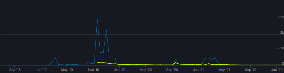 Shadowverse's past 5 years on Steam shows a different story. A dedicated playerbase that, much like Hearthstone, sees players return for content updates in peaks and then settling back into comfort. It has seen a peak of 24,167 players, which happened 5 years ago.
