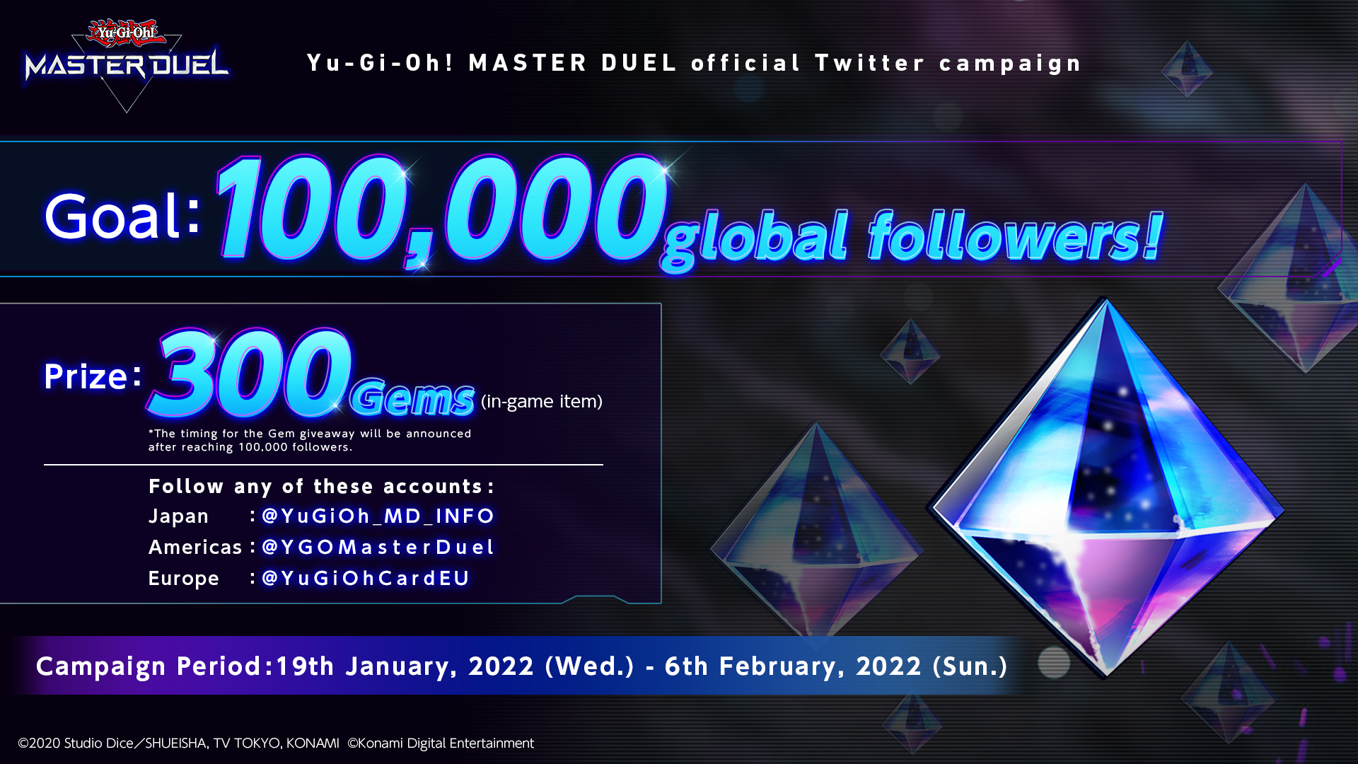 As promised a couple of weeks ago, everyone will be getting 300 Gems. These will be distributed with players later this month, though exactly how to obtain them remains unclear but we think its safe to say you should make sure you login to your game account before that process takes place just to make sure you're active. These 300 Gems are in addition to the 1000 Gems that are being distributed to celebrate 10 million downloads of Master Duel.