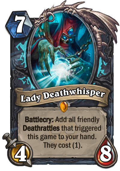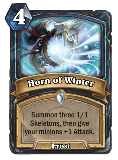 Dank: "Death Knights are undead champions of the Scourge serving under the Lich King’s rule. They can be described as evil reanimated Paladins, and this is reflected upon their class identity and gameplay mechanics. Death Knights wield the power of undeath, being able to resurrect and control the undead as well as unleashing dark magics at their foes. As such the class excels in Deathrattle synergies while also having a good number of minion removal tools. Because of their durability and presence in Northrend they’re also efficient at stalling, whether it be gaining life, having taunts, or freezing enemies. Lastly, making use of the large undead armies within the Scourge, the Death Knight can swarm the battlefield with ease as the smallest of minions are easily expendable.