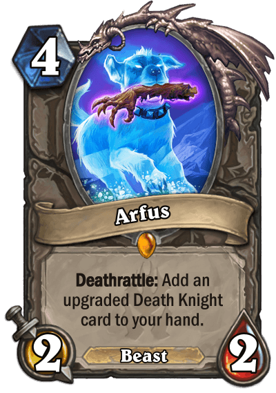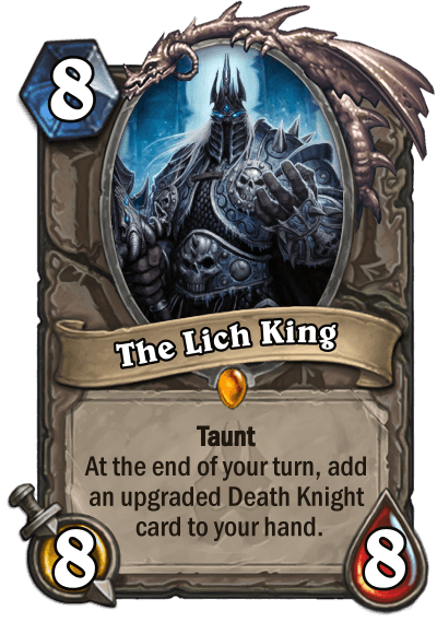 A known fact is that cards generated by the Lich King minion and Arfus will be included in the class as collectible cards, but with slight tweaking or as complete reworks. Because of this the text of both minions have been updated to avoid any confusion."