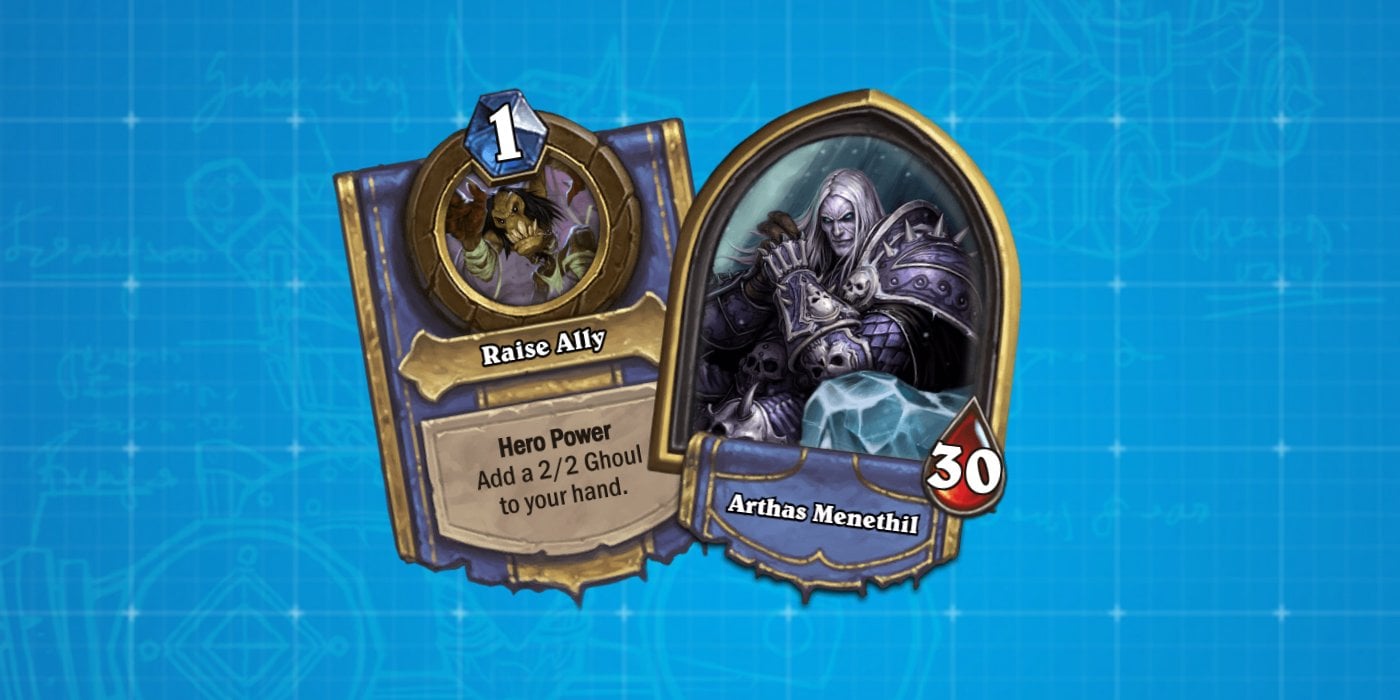 Your base Hero Power is Raise Ally, which is a 1-Cost Hero Power that adds a 2/2 Ghoul to your hand that costs 2 mana (with the same artwork as the Ghouls generated by Arrogant Crusader, Necrotic Geist, Val'kyr Soulclaimer, and Vryghoul). Upgraded, it becomes Raise Army which adds two Ghouls to your hand. The class does not contain its own class-exclusive keyword.