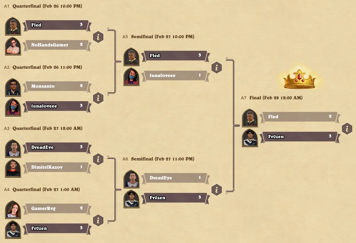 In Europe, two newcomers started with strong performances as Furyhunter reached the top 4, whereas SuperFake managed to go one step further and got to the final with a perfect 4-0 record before being defeated by xBlyzes. In Americas the fortune of the promoted players was not as good, as three of them (including re-promoted CaelesLuna) were left last in their respective groups. Only GamerRvg was able to reach top 8 before losing to Fr0zen who, in turn, went on to win this week's tournament after a hard-fought final against Fled.