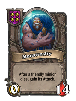 With the change to Tamsin's Hero Power (see further above), I suppose it makes sense to nerf Monstrosity because not being able to lose tempo by spending gold on the Hero Power would make it simply too strong. Now you will have to wait longer to get it and to have it carry you through power-leveling of your Tavern Tier. The Hero Power change is definitely more impactful than the Buddy change and it will be interesting to see how the overall power for Tamsin shifts.